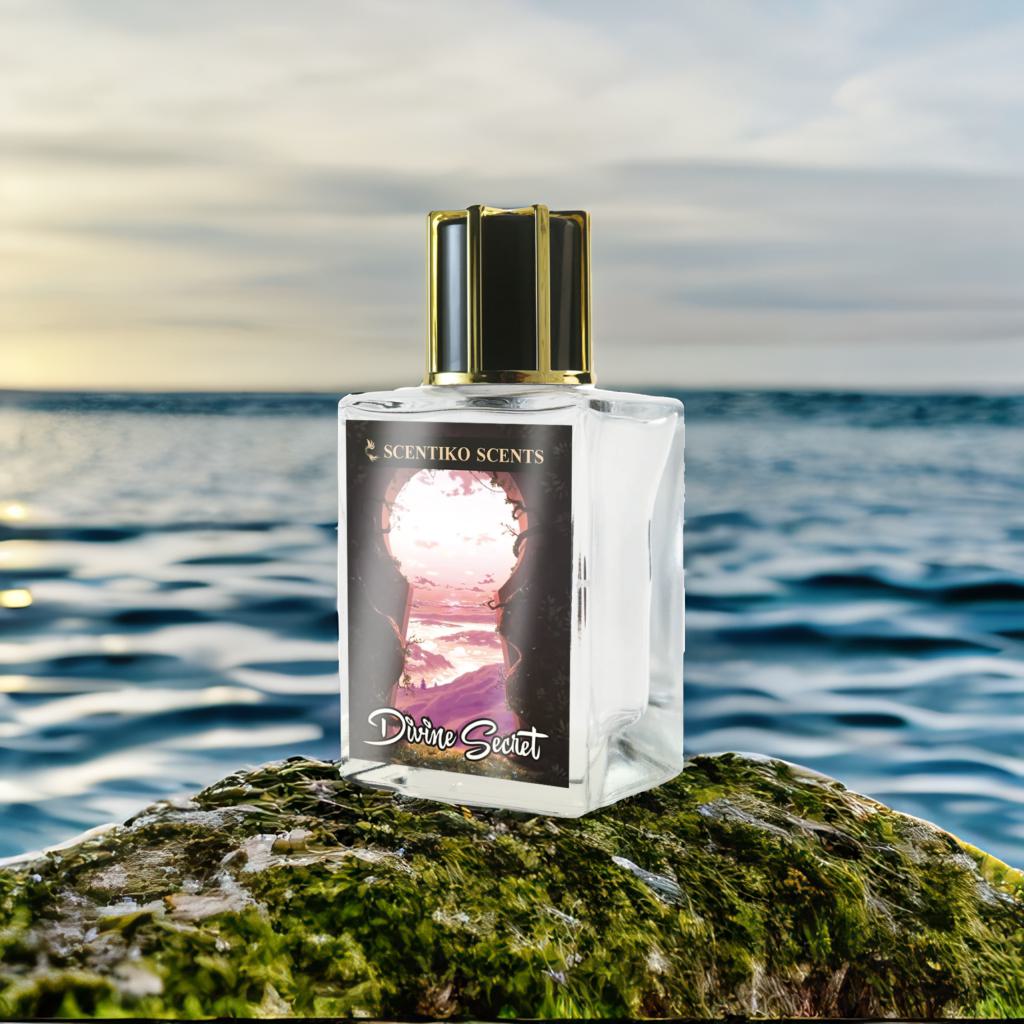 Divine Secret is a luminous and feminine fragrance that captures the essence of grace and elegance. The top notes bloom with a radiant blend of Peony, Citrus Accord, and Mandarin Orange, offering a fresh and vibrant opening. At its heart, the fragrance reveals a mesmerizing bouquet of Rose, Osmanthus, and Pink Pepper, adding a touch of sensuality and sophistication. The base settles into a soft yet lasting embrace of Sandalwood, Patchouli, and Musk, creating an irresistibly captivating aura.